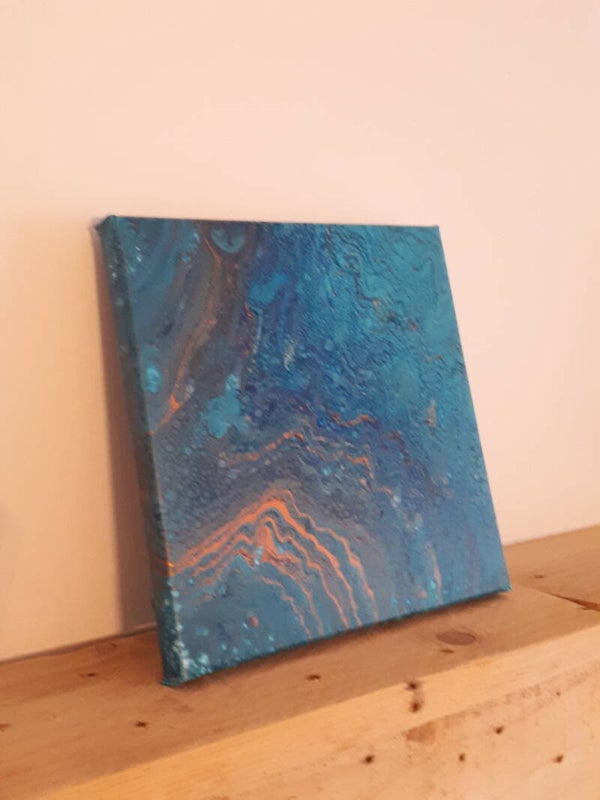 This small but beautiful canvas invokes the depths of the ocean floor with veins of rich copper ore just under the surface.
