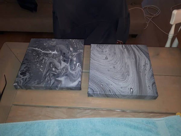 Using only black, white and silver; the consistancy of the paint was the right consistancy to achieve this beautiful ring pour reminiscent of it's namesake on the moon. This is painting 2 of 2 in the "Gray Series". Although it can be purchased on it's own, I offer a discount if you would like both pieces (Painting 1 is "15 Shades of Gray")