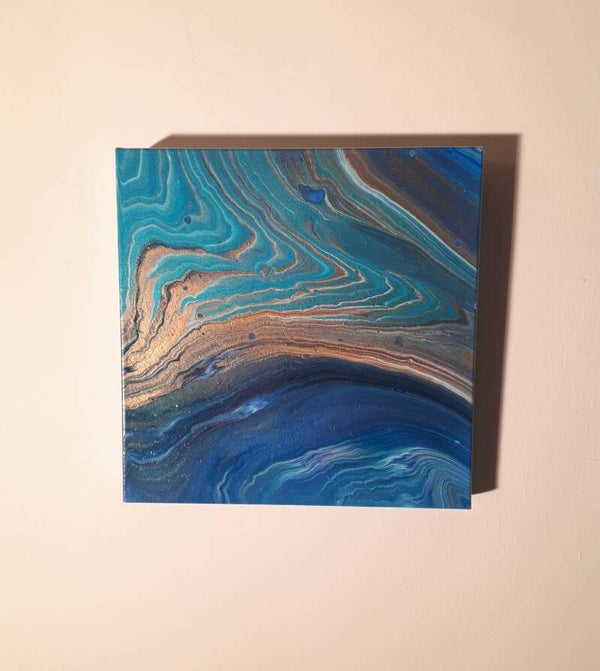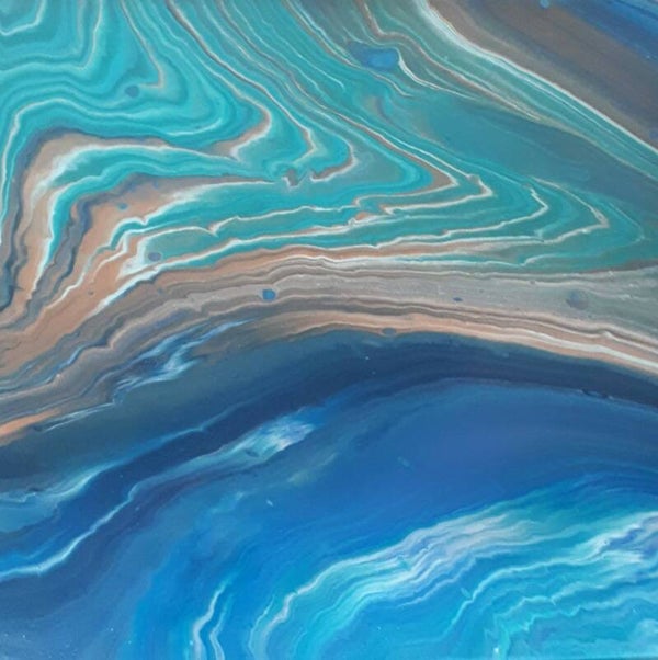As the US Presidential Election in 2020 neared, I often heard the term Blue Wave. Regardless of your political leanings, the words stuck in my head when the beautiful patterns appeared on this canvas.