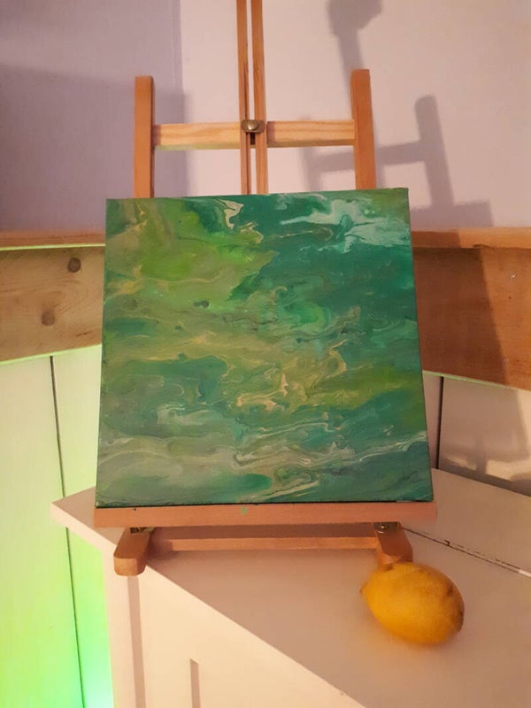 Like my piece “November”, the colors and composition on this canvas capture the feeling of a certain time of year. Spring has arrived, the rain has stopped and green is everywhere!