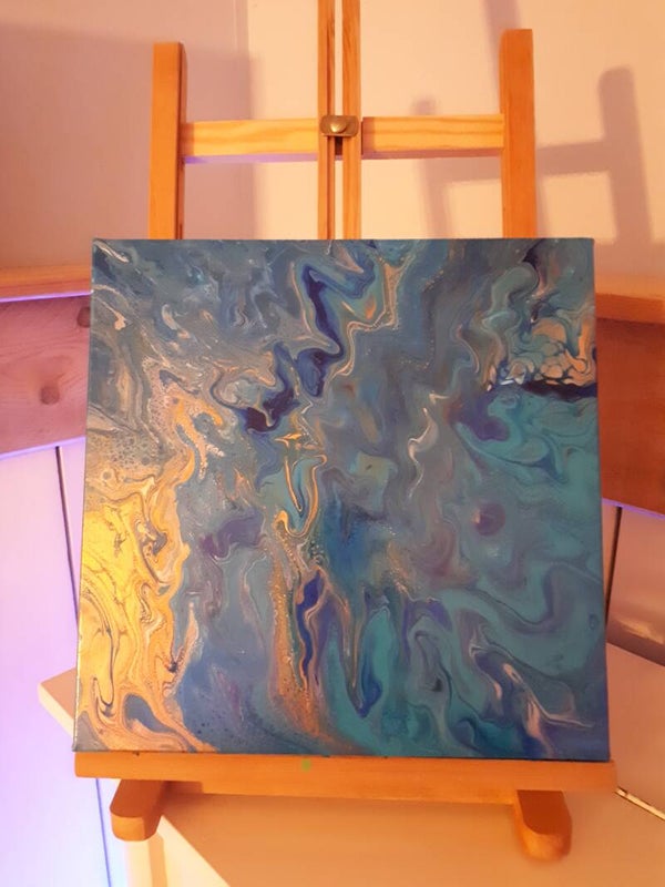Made at the same time as “Currents” with the same paint colors, this piece captured more movement in the water as it expands outward and right off the canvas!