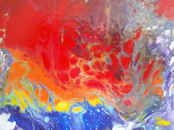 I've done several rainbow pieces but every time it seems like something is happening to the rainbow... it's melting, or flaming... this time: it's steaming! Using a middle swipe technique this colorful piece is filled with cells and lacing that will brighten any wall.