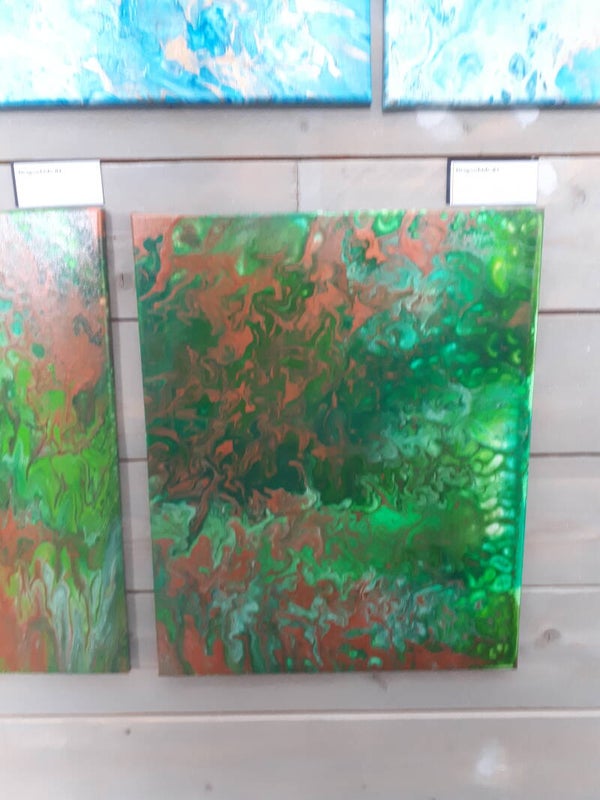 Deep with the texture and leathery skin of an ancient green dragon, these paintings also reflect the gold and copper treasure she protects. Beautiful from every angle, the metallic colors shine bright when the light hits them. While available individually, both paintings together may be purchased at a discount.