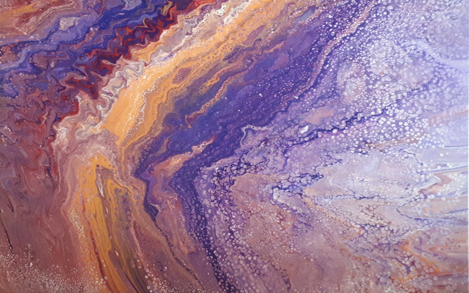 When a woman who sings in a choir I often work with contacted me about the paintings she saw on my Facebook feed, she said she was interested in displaying one of my pieces in her newly acquired gallery. She asked if I had any large pieces and when I said 50 x 70 was curently my largest, she nearly laughed. So I challenged myself and poured my largest canvas to date!