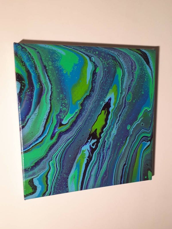 Although using blues and greens in my pieces is not uncommon, it wasn't until the beginning of 2021 that I tried a puddle pour. I'm pleased I did because colors that I knew I loved stretched out into long, elegant lines that move with grace across this stunning canvas.