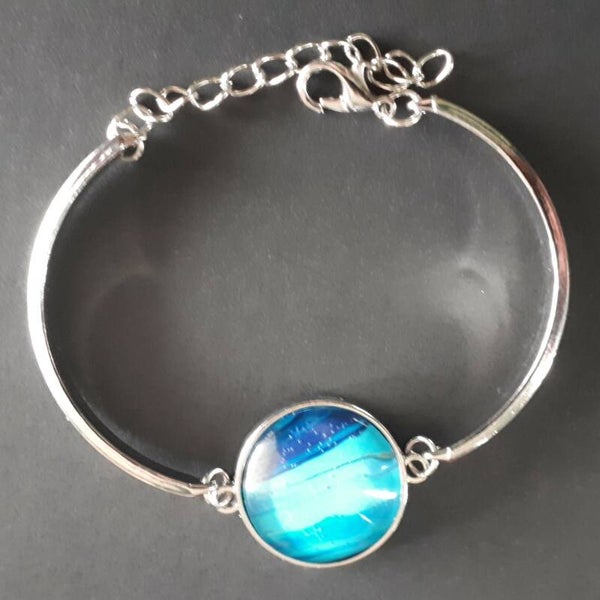 Adjustable silver-coloured bracelet with unique ocean-colored stone Product # ArmSCMBcab1