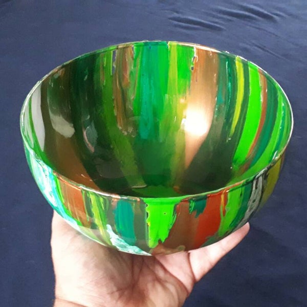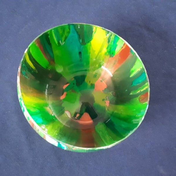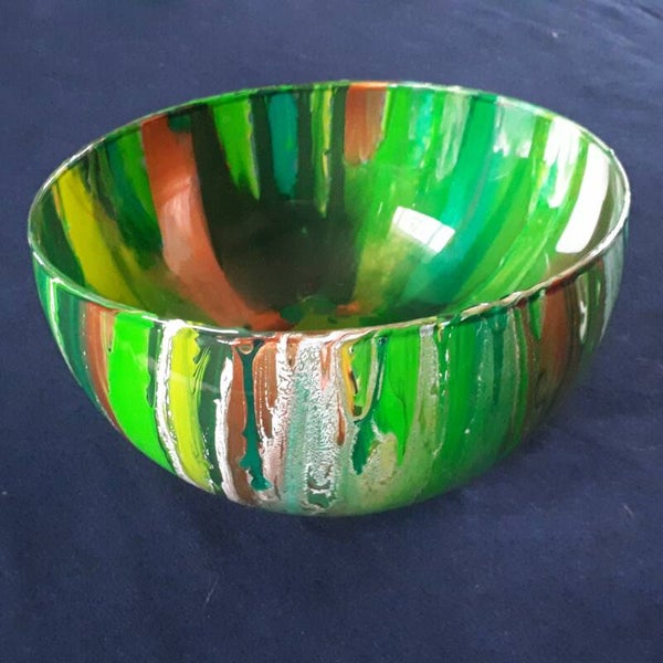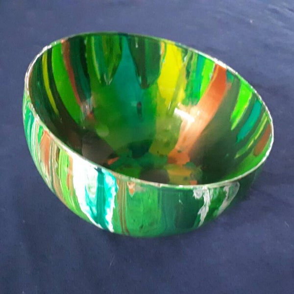 This gorgeous green and copper bowl has a slanted top so you can see the contents as you approach it. Beautiful from every angle this bowl is perfect for candy; or if you want to keep people from touching it, fill it with potpourri! Then it looks good AND smells good.